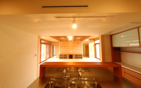 リビングの生活風景。人が暮らすことで空間が生き生きしてくる。炊事中も会話は途切れることがない。