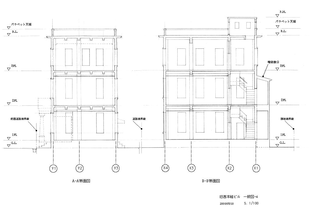 外観を優先し、床高からの窓の高さが徐々にずらされている点が明瞭です。