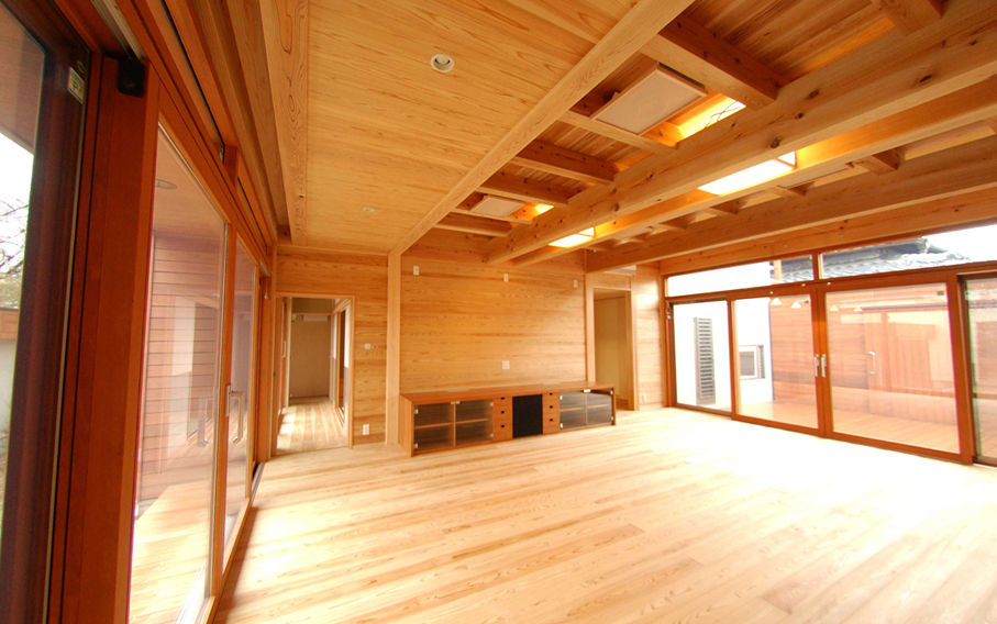 南北に吹き抜けたリビング天井は木組が見える。木肌が段々深い飴色に変化している。