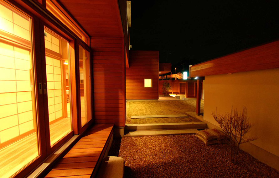 石庭から芝庭、アプローチを眺める。